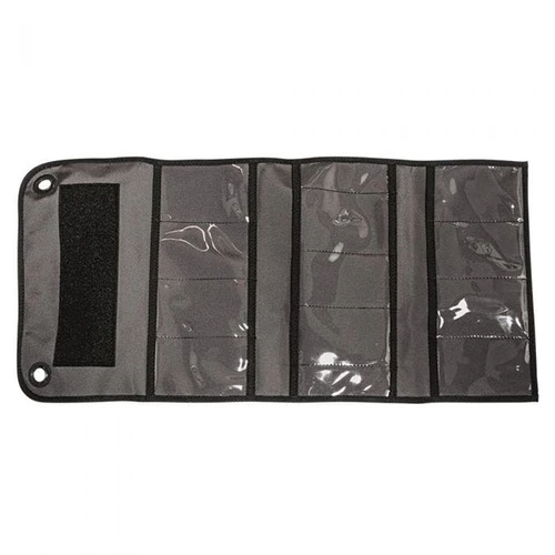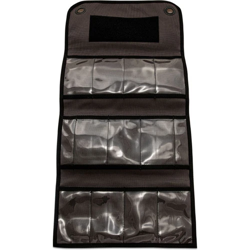 Showcase your collection with Benchmade’s new Knife Roll. Made in the USA it features high strength, 1680 nylon with urethane coating construction and see-through pockets for up to eleven knives and two pens. Dual grommets at the top allow you to hang your knife roll. Built in gussets help the knife roll fold into a small 12” by 6” footprint and dual buckles secure it in place when folded. A strong, integrated carry handle makes it easy to bring your knife roll along with you when in the field or just showing off to friends.