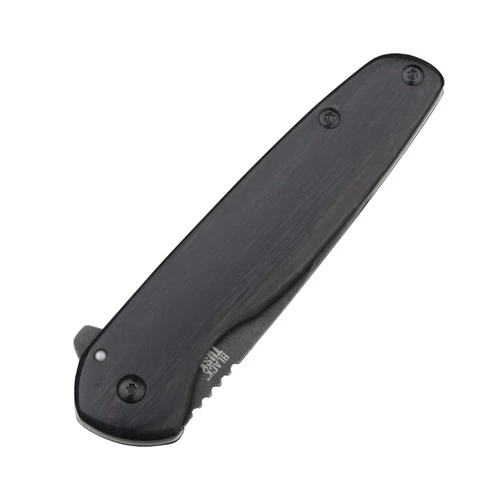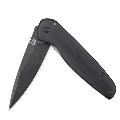 Considered a perfectly sized gentleman’s knife, the Black Tusk Arete is a convenient and compact length, measuring only 3.5” when closed. Featuring a ground spear-point blade constructed of D2 steel, the Arete opens with a convenient flipper and locks solidly using a frame lock design. The ball bearing system ensures smooth opening, allowing for quick deployment, even one-handed. With a slim, deep carry pocket clip, it rests discreetly in your pocket. This model features a fashionable pakkawood handle that goes beautifully with the black blade. Also available in , , and .