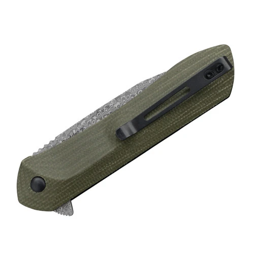 Made for simple one-handed opening, the Boulder has a flipper combined with an assisted opening mechanism. With this set up, you can quickly and easily deploy the Damascus-clad 10Cr15CoMoV steel blade even when wearing gloves. A wide choil leaves plenty of room to sharpen the entire blade when it comes time for a tune up. For carry, the pocket clip has been designed for a steep ramp, allowing for easy entry even with thicker materials, and maintains a strong hold.Â