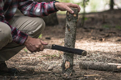 What is the best tool for splitting wood? For camping, we believe that tool is the Buck 108 Compadre Froe. The froe is designed for clearing, heavy chopping, splitting, and batoning. The full tang 5160 spring steel goes throughout the entire 16.75″ froe, giving it excellent shock absorption and strength you can rely on. The 9.5″ cutting edge excels at chopping but also works well for detailed work. Cerakote Cobalt coating gives you added durability and corrosion resistance. The ergonomic handle features natural canvas micarta that provides superior grip, even in wet conditions. The Froe includes a made in the USA, black, genuine leather sheath with a stainless steel attachment ring so you can keep your froe at your side or safely in your pack. The 108 Compadre Froe is the perfect tool for your camping and general outdoor needs.Â