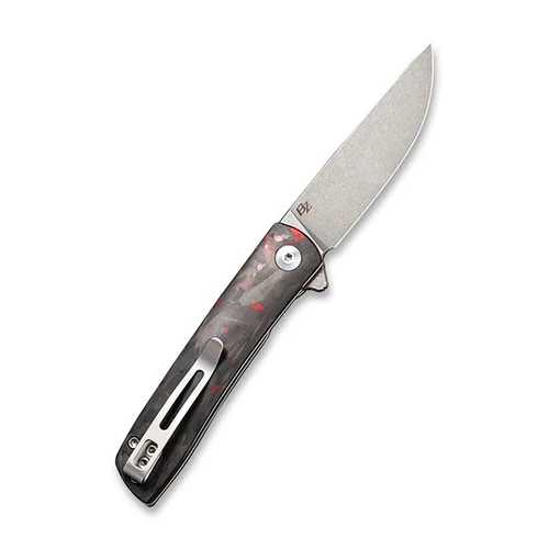 From WE Knife Co. and Brad Zinker comes the sleek and smooth Bo. Featuring great flipping action, a utilitarian drop point blade of Nitro-V steel, an ergonomically contoured carbon fiber handle, and a deep carry pocket clip, the Bo remains classy while still being able to tackle tough cuts with ease. The colourful marbled scales contrast nicely with the muted grey of the stonewashed blade, making for a collectible look that is perfect for EDC.