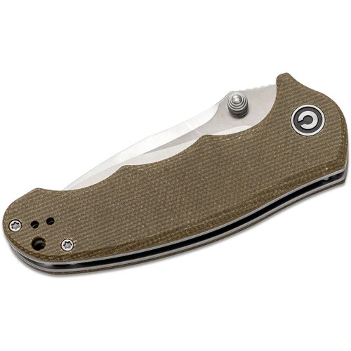 This model of the CIVIVI Hooligan has a satin finished D2 blade and micarta handle.