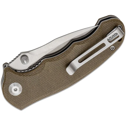The Hooligan from CIVIVI is a mid-size folding knife with a comfortable grip and a light design. The D2 blade is tough, holds a good edge, and is great for all your hard use tasks. The blade deploys easily thanks to the dual thumb studs and bronze washers in the pivot. The best part is the insanely comfortable handle with great grip. The micarta handle has three grooves that your fingers can lie in while the gentle curve of the spine fits perfectly into your palm. The light jimping on the back of the blade sits where your thumb would fall naturally when gripping the knife and provides superior control. The knife’s compact size, paired with its deep-carry pocket clip makes the Hooligan very easy to carry.