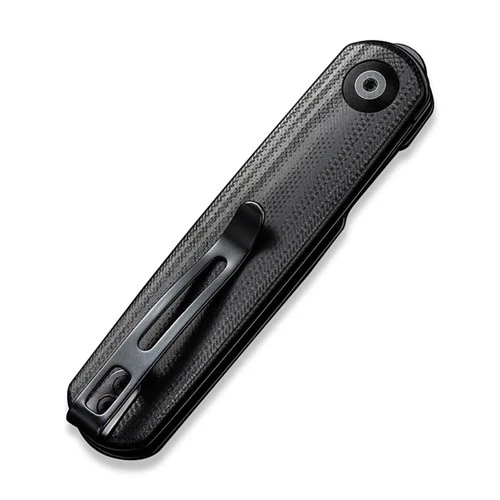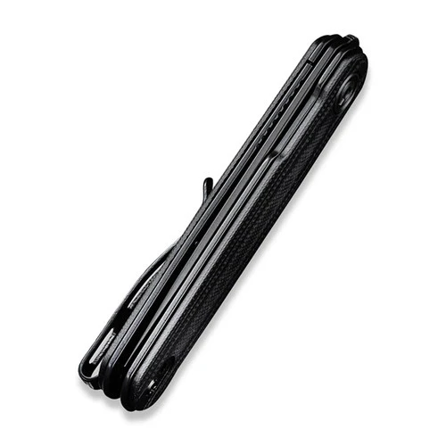 This model features a black stonewashed blade and black G10 scales over stainless steel liners.