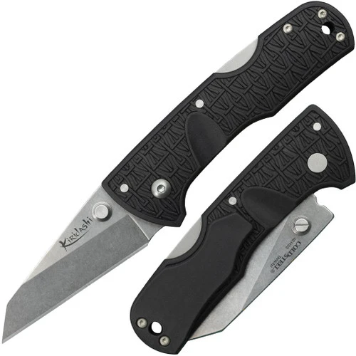 Now Cold Steel has updated this famous classic utility knife by making a folding knife version! Our Kiridashi folder offers a razor sharp classically shaped blade made from 4034SS stainless steel that’s mated to a handsome, comfortable Griv Ex™ grip that will never rot, crack, warp or mildew. To guard your fingers, it comes with our Tri-Ad® Locking mechanism, proven time and time again to be the strongest, safest locking mechanism available. Light in weight, thin and handy, our Kiridashi is a joy to carry clipped to a pocket. And it’s bargain priced and a tremendous value to boot!