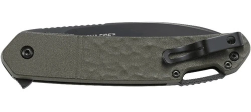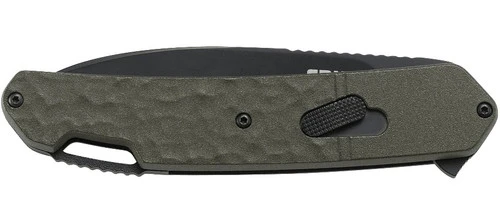 Years ago from his shop in Kaneohe, Hawaii, Ken Onion invented the first generation of Field Strip technology. With the recrafted, reimagined, and simpler Field Strip Gen II, his creativity has boldly entered new territory. The Bona Fide™ OD GREEN folding knife is a substantial everyday carry measuring at just over 8” from the tip of the strong 1.4116 blade to the end of the strong, lightweight textured green aluminum handle. The dropped tip of the blade has both the benefits of modified wharncliffe and modified drop point and deploys smoothly with the IKBS™ ball bearing pivot system. Field Strip Gen II lets you quickly disassemble it without tools on the spot to purge it of grease and grime.