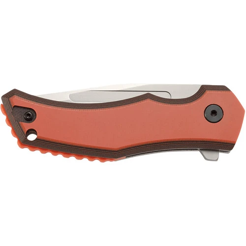 And while the knife might act fast, a strong grip comes with the territory. Designed with a drop point centered with the knife’s grip, its G10 handle reinforces the blade, the point punching through surfaces with bullseye’s precision.