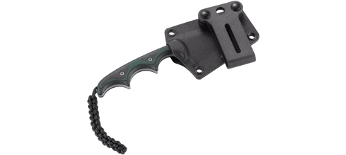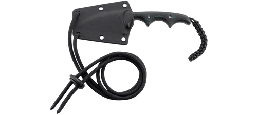 These compact fixed blade neck knives with tough handles come in a variety of different blade styles. In the woods or around the house they feel equally at home.
