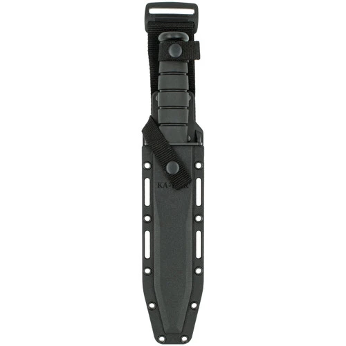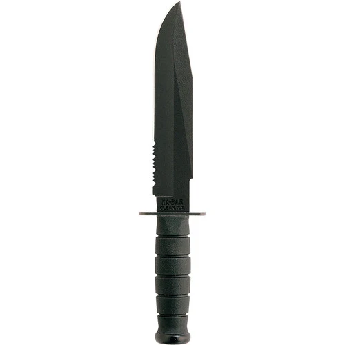 The 1.5″ wide blade of this utility knife from KA-BAR gives it extra strength for performing those heavy duty tasks. A partially serrated edge makes cutting looped and synthetic materials a breeze. Tang stamped USA. Kydex sheath included. Made in the USA.