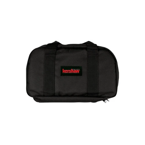 This right-sized knife bag from Kershaw comes in basic black with the red logo embossed on a black faux-leather patch on the front. It has a place for up to 18 of your favorite folding Kershaws. They’ll be well cared for in the deep, padded knife pockets. The pockets are snug, so your knives stay securely in place, and they’re large enough to accommodate even our largest knives.