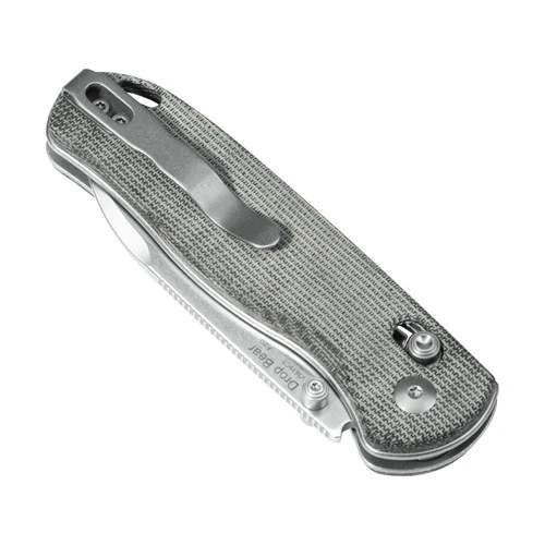 Gray handle and stonewashed steel create an industrial sense of urban construction. You will find that the Micarta handle show a texture like an anti slip plate if you look closely at the obvious lines. The fabric feels non-slip and dirt-resistant. Combined with the 154 steel blade, the heavy industrial DROP BEAR would come in handy to explore urban ruins or abandoned warehouses.