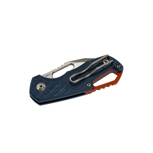This dependable utility knife design is in a compact EDC package. This stellar Voxnaes design features a blue FRN handle and a stonewashed clip point blade. The short blade is made from N690 stainless steel and you can decide the opening system, flipper+thumb hole or thumb hole only. A stainless steel wire pocket clip and, thanks to the aluminum spacer serving as an oversized lanyard hole, this pocketknife can be attached to your gear by means of a carabiner which makes it an ideal tool for mountain climbing or hiking.