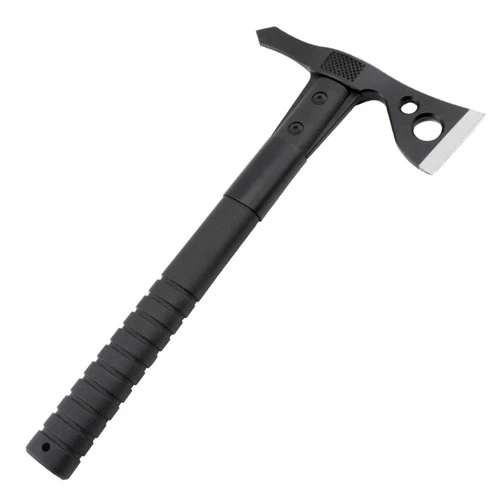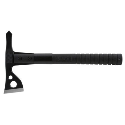 The SOG FastHawk is faster, lighter, more agile, and easier to carry than its sibling the Tactical Tomahawk. This is not to say it is not still powerful, versatile, and functional. It is a tool that will be used for much more than you might anticipate. Chopping, breaking, cutting, hammering, piercing, digging, prying, pounding shaving, notching, opening and throwing are all capabilities well within the FastHawk’s reach. The 420 stainless steel head with a hard cased black coating is mounted to the ballistic polymer handle with heavy-duty bolts and a steel ferrule to insure the strongest integrity. Side hammer checkering insures precision placement when swinging. Carried in a nylon sheath that can be mounted to belt, backpack, or gear. It is a universal tool for modern man.