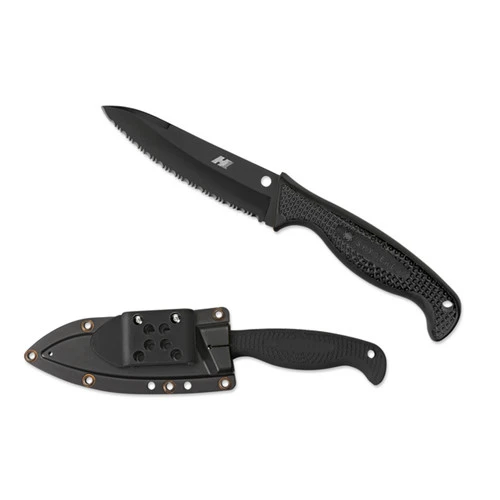 The handle of the Aqua Salt is made of durable fiberglass-reinforced-nylon (FRN) and is injection molded directly onto the substantial tang for strength. The handle’s Bi-Directional Texturing™ pattern provides a slip-free grip and ensures superior control, even with wet hands. To protect the knife when not in use and allow it to be conveniently carried, the Aqua Salt includes a matching injection-molded polymer sheath with a multi-position G-Clip™ attachment that supports belt or waistband carry. The sheath’s grommeted construction also allows it to be easily lashed or flex-tied to personal equipment. Featuring a fully serrated SpyderEdge™ cutting edge, the Aqua Salt is a truly exceptional cutting tool that is now optimized for tactical applications.