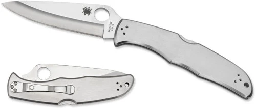 The stainless-steel-handled Endura 4 combines all the proven features and benefits of this iconic design with the heft and increased strength of a stainless handle. Its blade is saber-ground from premium VG-10 stainless steel and proudly features Spyderco’s Trademark Round Hole™ for quick, reliable one-handed opening. Available in PlainEdge™, SpyderEdge, and CombinationEdge™ configurations, the blade is supported by a sturdy back lock mechanism that locks it securely open when in use. Its satin-finished handle is chamfered at the edges for added comfort and includes four sets of mounting holes for the hourglass clip to support left or right-side tip-up or tip-down carry.