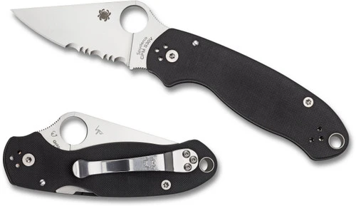 The Para 3 takes all the proven features and benefits of Spyderco’s best-selling Para Military™2 and distills them into an even more compact all-purpose cutting tool. Its three-inch blade is precision machined from premium CPM® S30V® particle metallurgy stainless steel and features a full-flat grind for a superior balance of strength, point utility, and low-friction cutting performance. It includes a textured index-finger choil and thumb ramp that provide a solid purchase for a forward grip and offer enhanced control during precise cutting tasks. The blade’s signature Trademark Round Hole™ clearly brands it as a member of the Spyderco family and is fully accessible to allow quick, positive, one-handed opening with either hand.