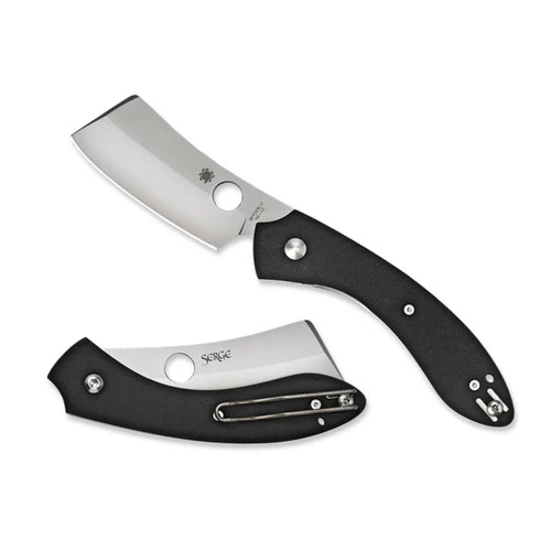 Designed by custom knifemaker Serge Panchenko, the Spyderco Roc combines an unusual cleaver-style blade with a gracefully curved handle and a sturdy LinerLock mechanism to create a uniquely functional cutting tool that challenges convention. Precision ground from VG-10 stainless steel, the Rocās blunt-tipped, PlainEdge⢠blade features a low-profile matte gray finish and a saber grind that balances high-performance edge geometry with the strength and heft of a full-thickness spine. A long section of jimping (textured grooves) on the bladeās spine provides a solid purchase for the userās thumb, and an easily accessible Trademark Round Hole⢠ensures swift, positive one-handed opening with either hand.