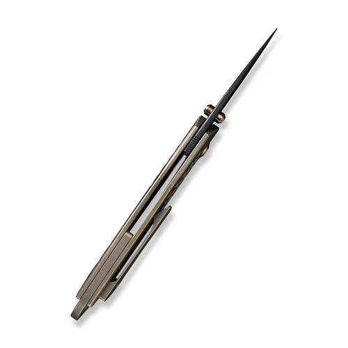 This model features a black stonewash CPM 20CV blade and bronze anodized titanium handle.Â
