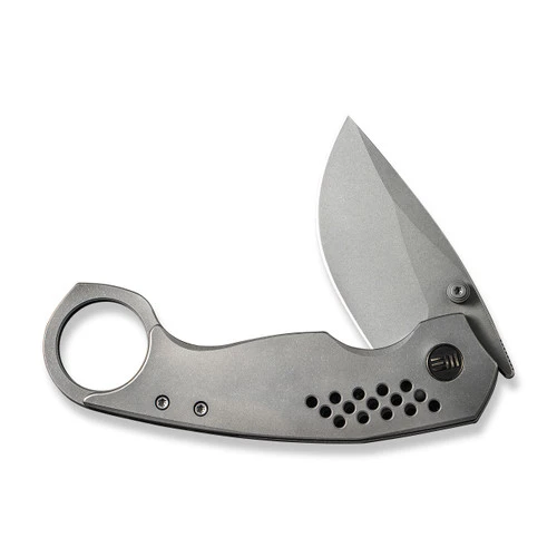 The WE Knife Co Envisage, designed by Tuffknives’ Geoff Blauvelt, is a premium folding pocketknife featuring a high-utility and high style finger ring. The wide profile CPM 20CV drop point blade provides excellent durability and edge retention and opens smoothly with a thumb stud opener and ball-bearing pivot. The titanium handle has a solid frame lock and a milled titanium pocket clip.