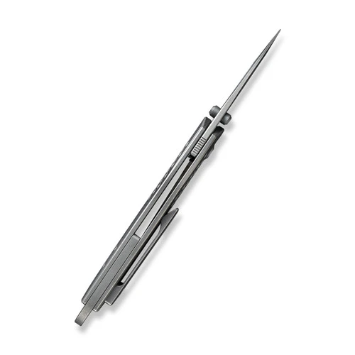 This model features a grey stonewash CPM 20CV blade and grey titanium handle. Â