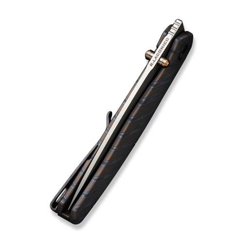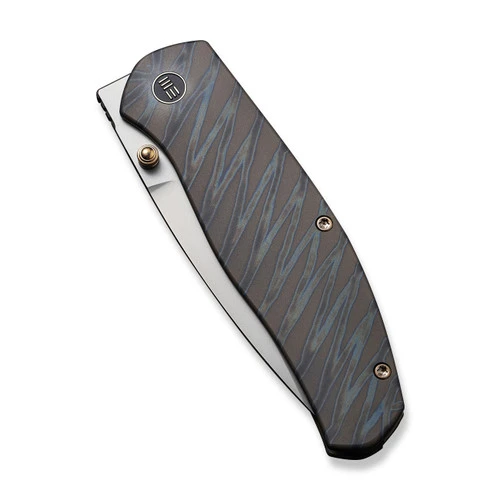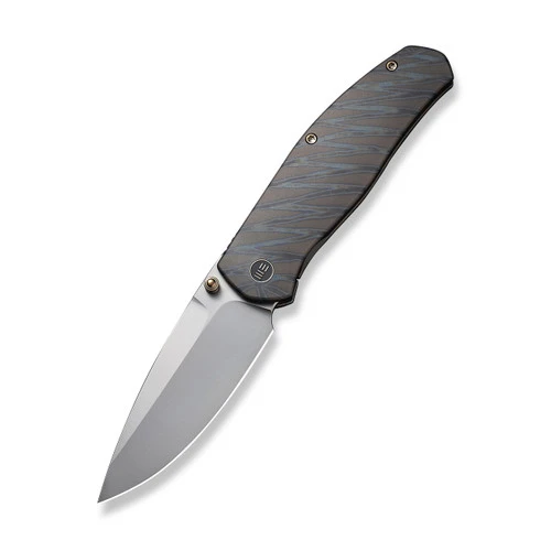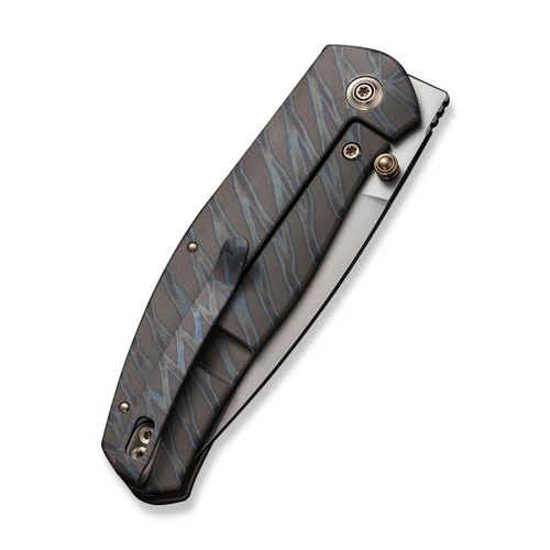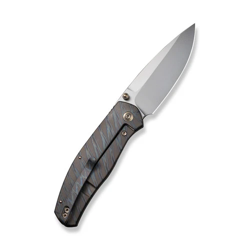 Esprit comes from the French language meaning “to be lively”, and the tiger stripe titanium Esprit from WE Knife Co. is an exciting design from Ray Laconico. Made to be slim and stylish, the silver bead blasted CPM-20CV drop point blade can be opened easily with one hand using either the dual thumb studs or front flipper openers and the solid frame locking mechanism is smooth and locks up tight.Â
